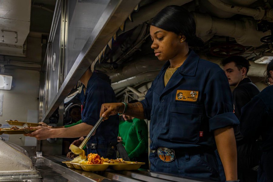 وجاء هذا الإعلان في تدوينة نشرتها القيادة على منصة “إكس”، مرفقة بصورة من داخل مطبخ حاملة الطائرات “يو إس إس أبراهام لينكولن”، أظهرت عناصر البحارة أثناء تجهيز الوجبات لأفراد الطاقم.